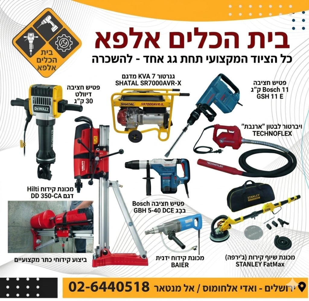 חברת Alpha Tools מתמחה בהשכרת ציוד בנייה וציוד מקצועי בירושלים.